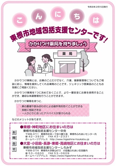 ・東根市には2か所の地域包括支援センターがあります ・もしもの時のためにわたしが備えておくこと ・地域包括支援センターでは、一般介護予防事業を実施ています ・地域包括支援センターとは |